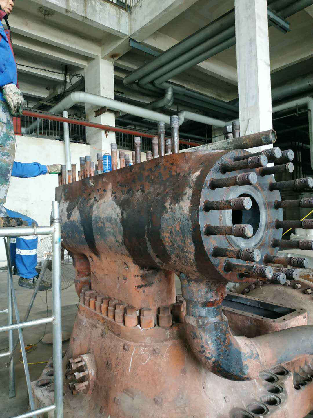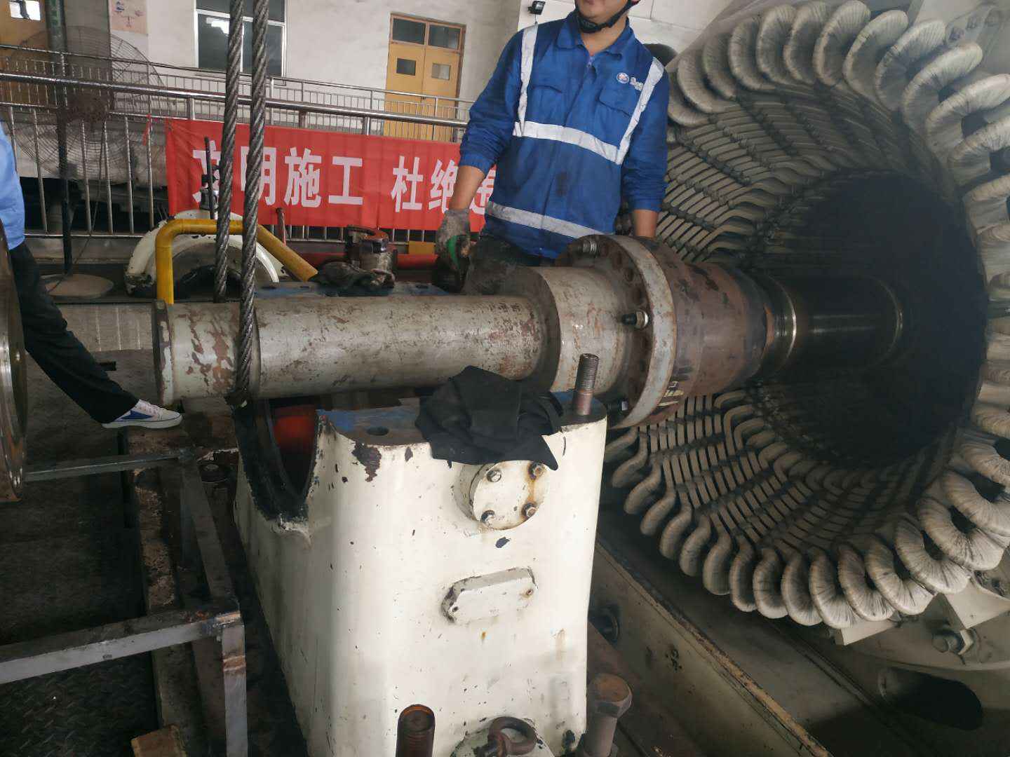 由澳门·威尼斯人(中国)官方网站承建的山东海能化学有限责任公司机组B15MW背压式汽轮机组(原 C25抽汽凝汽式机组)大修工程现已完成凝结水泵、油站检修工作,发电机前后轴承座基础垫铁研磨工作,目前蒸汽室螺栓的拆卸工作及发电机定子与转子的清理工作陆续启动,下气缸吊隔板工作也在稳步进行中。